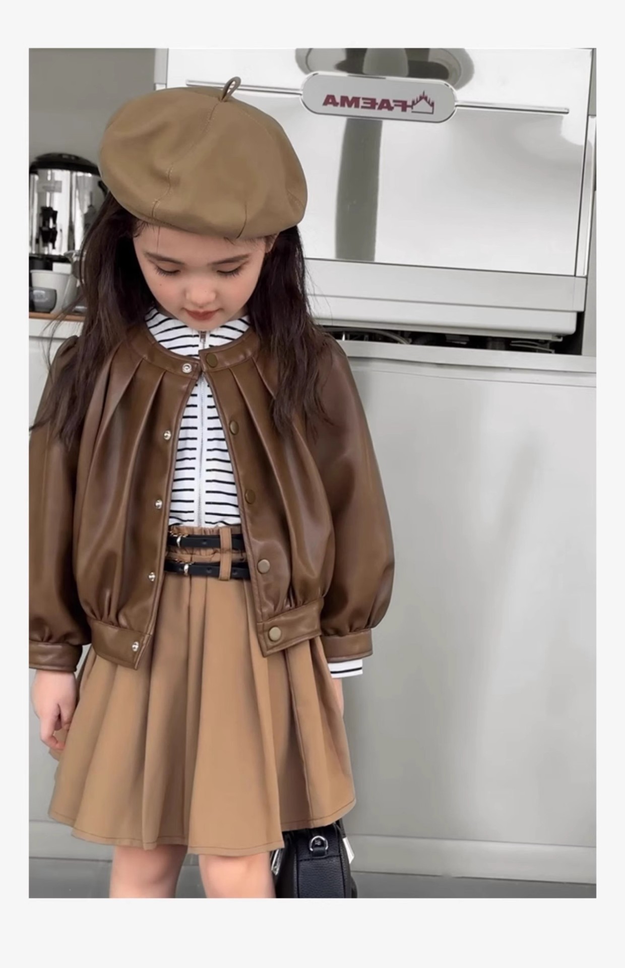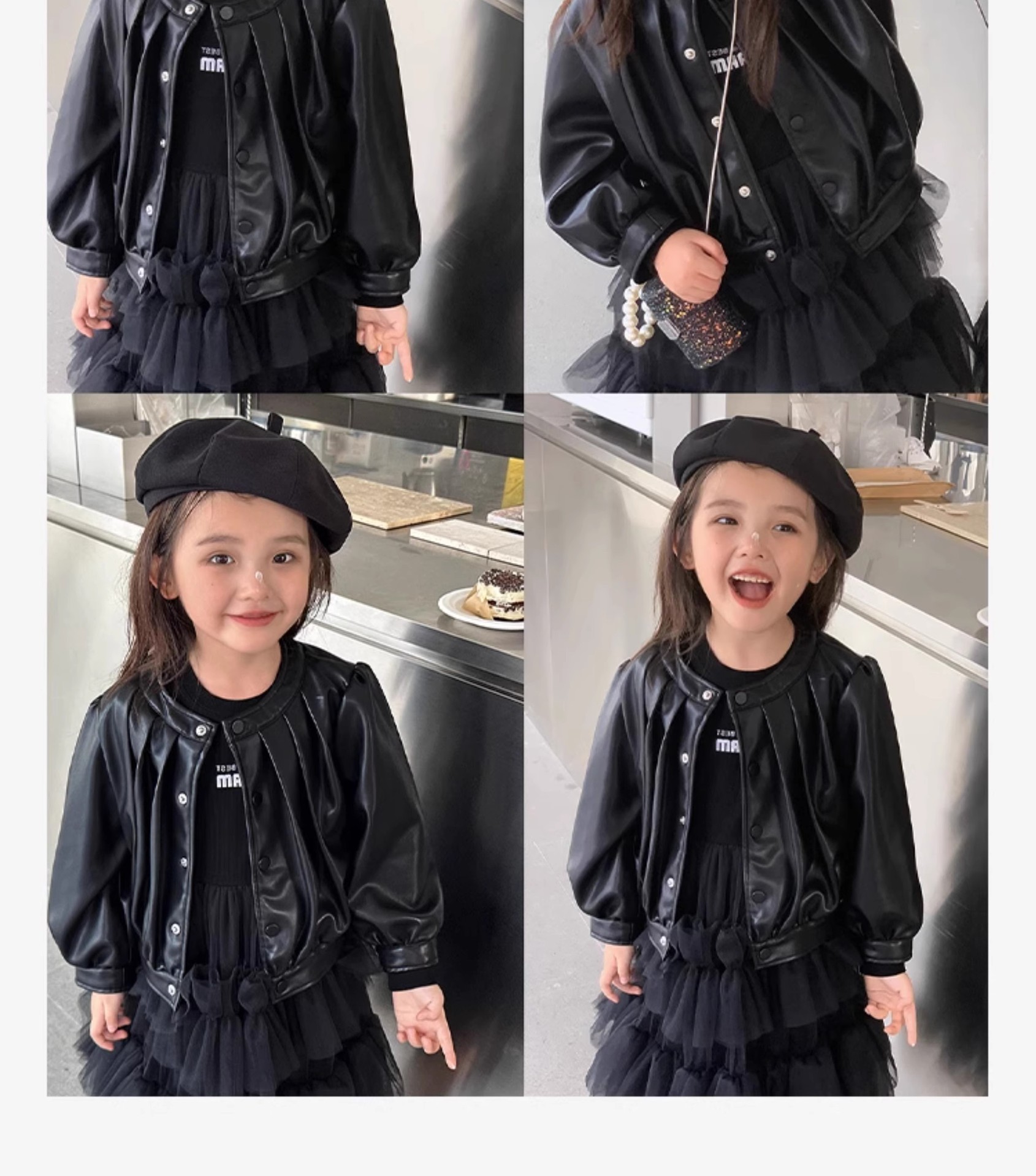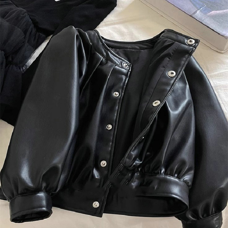 シンプル 3-8歳ガールズ 子供服 秋冬新作 ジャンパー ライダース PU革上着 ブルゾン ジャケット 5-13