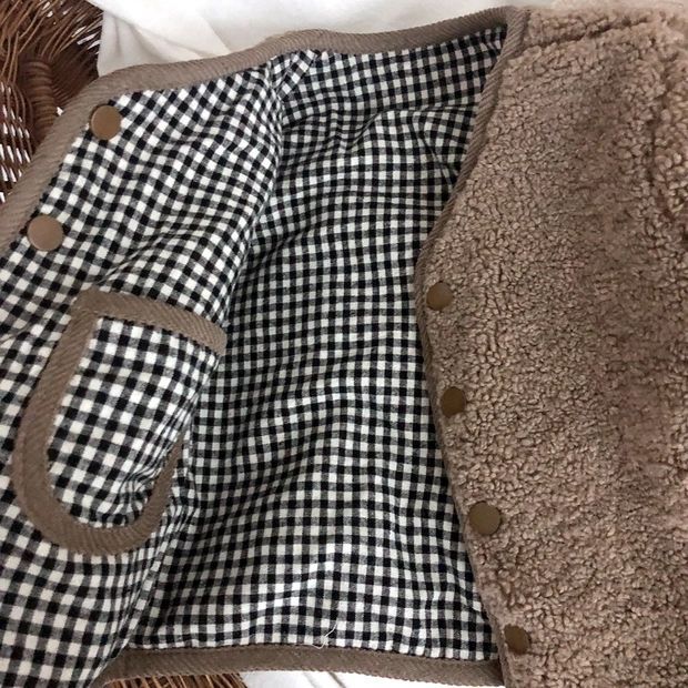 現在カテゴリ:全て商品 > 冬新作 韓国風子供服 ショートコート ジャケット チック柄 両面着可 厚手 キッズ ボア裏起毛 80-130