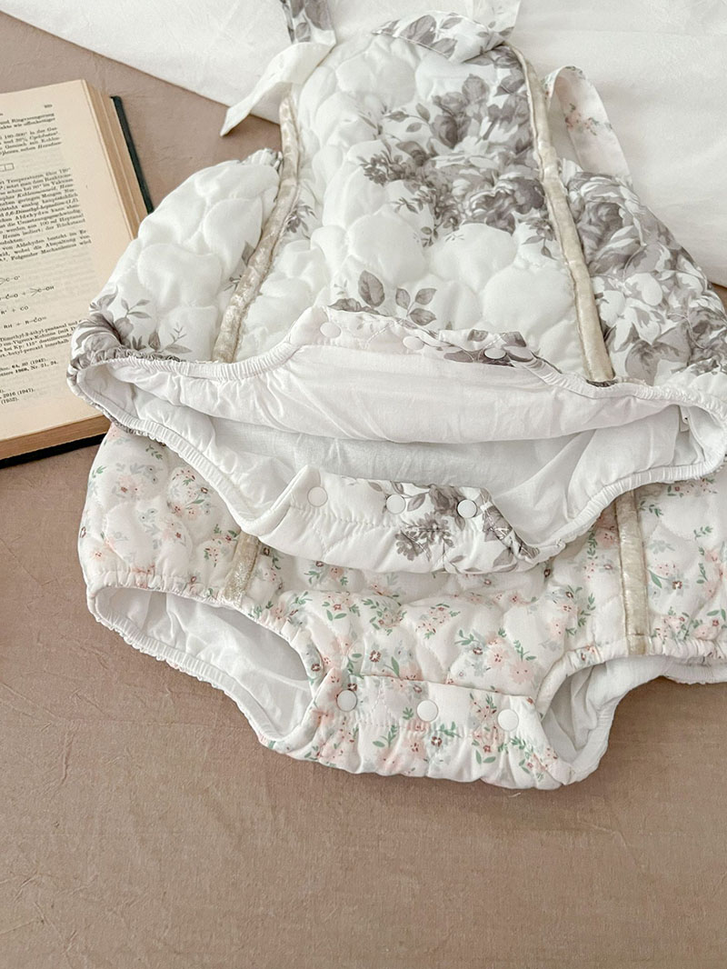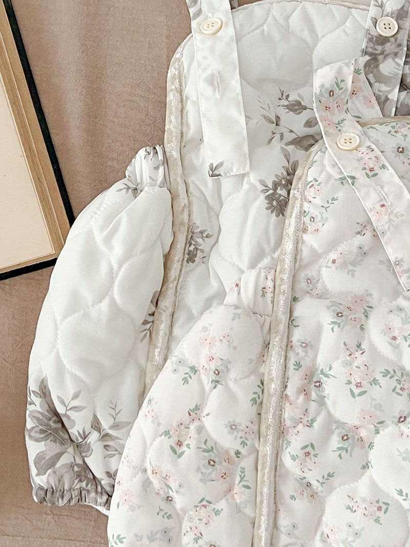 秋冬新作 ガールズ 連体服 花柄 キルティング 暖かく 綿入れジャケット+パンツ サロペット 66-100