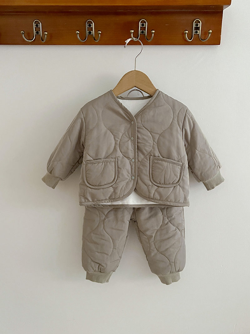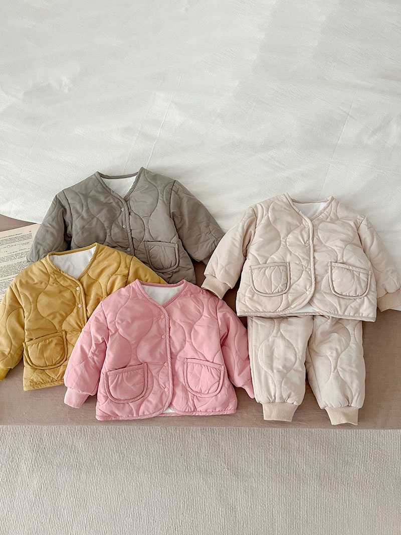 現在カテゴリ:全て商品 > 秋冬新作 0-3歳 ユニセックス キルティング 裏ボア裏起毛 ジャケット 上着+ズボン 66-100