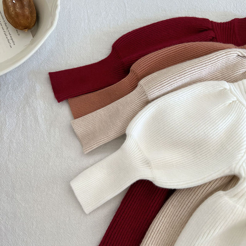 秋冬新作 0-3歳子供服 ガールズ ワンピース ニット ワンピ ビショップ・スリーブ シフトドレス 73-110