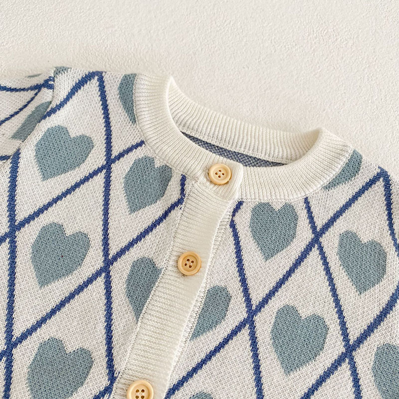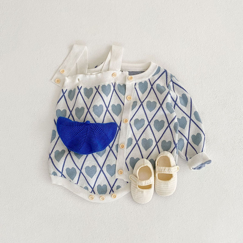 秋冬新作 ガールズ 子供服 ニット ハート ジャケット カーディガン 連体服 ロンパース セーター 66-100