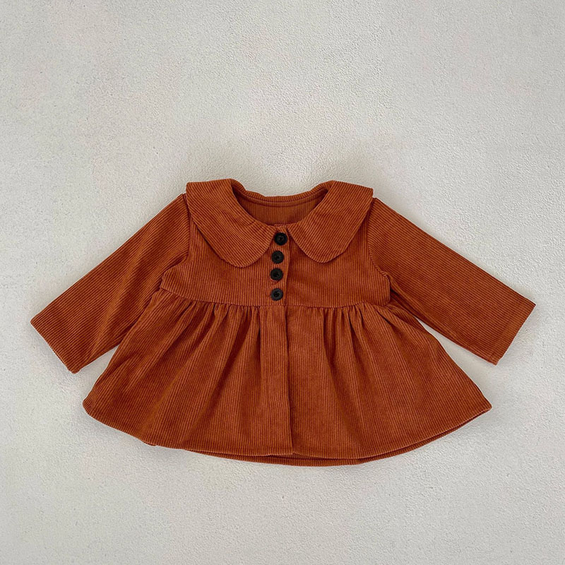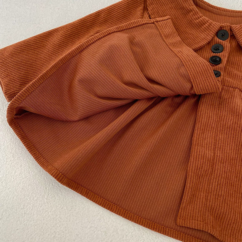 秋冬新作 0-3歳子供 ガールズ コーデュロイ ブラウス シャツ 上着+ショートパンツ 66-100cm