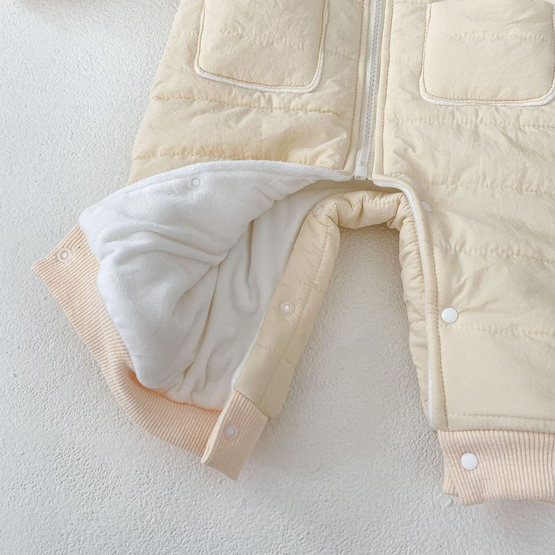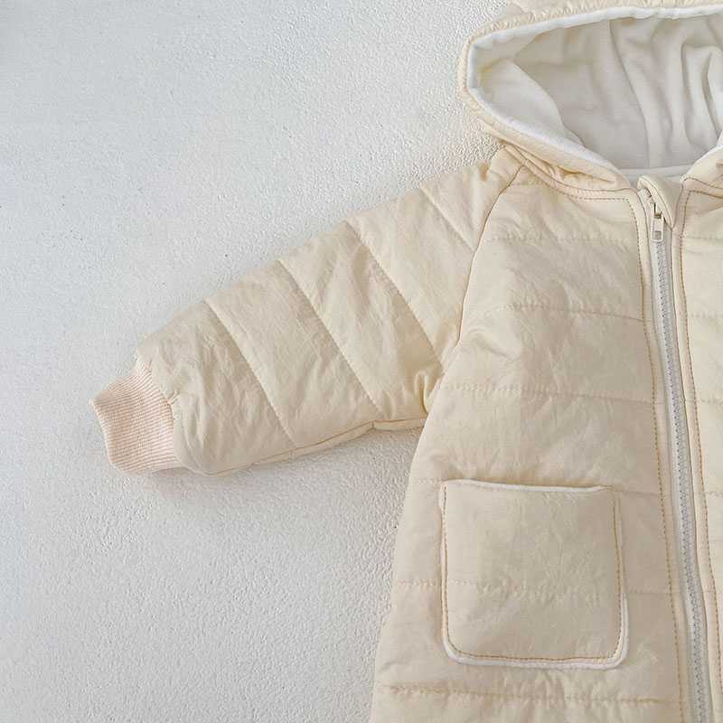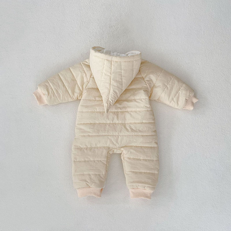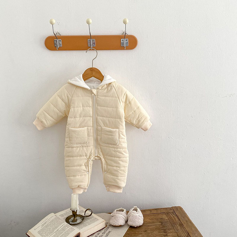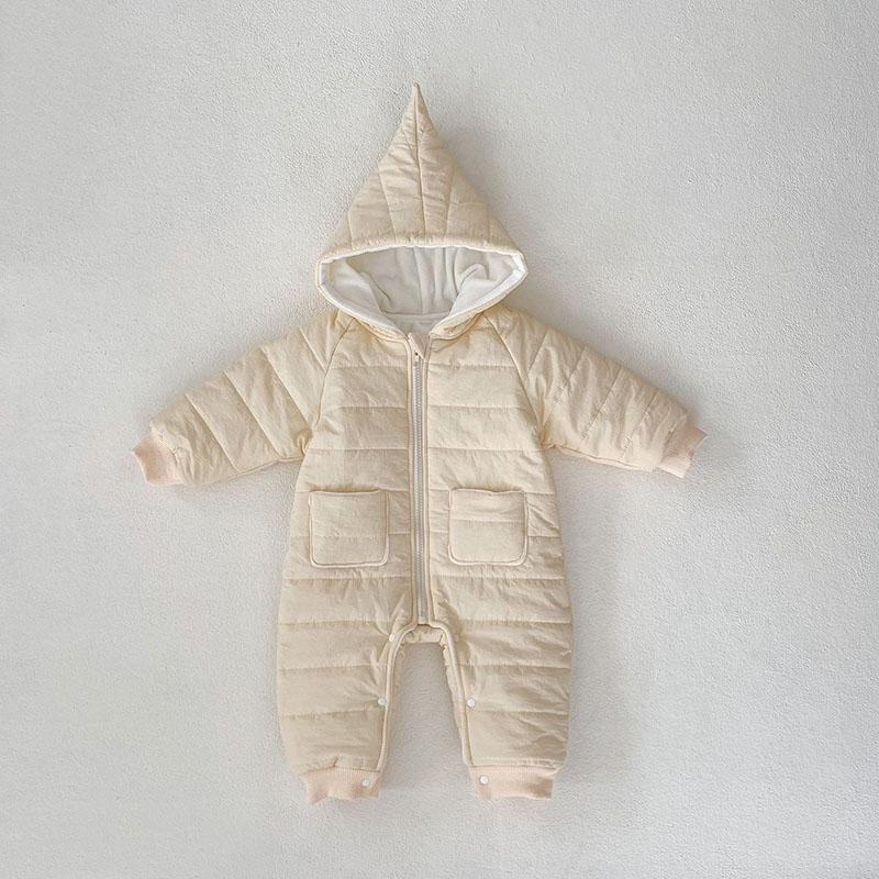秋冬 ユニセックス 連体服 綿入れ キルティング 裏ボア裏起毛 フード付ロンパース カバーオール 66-90