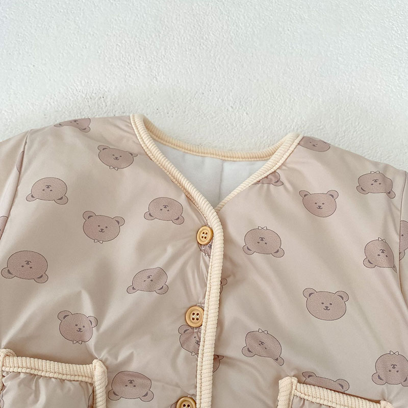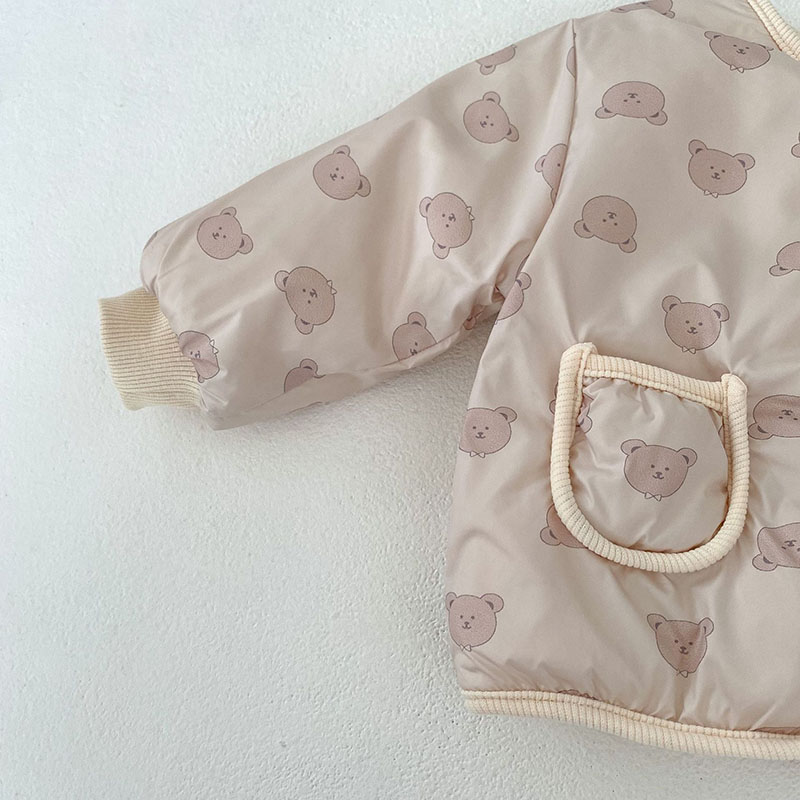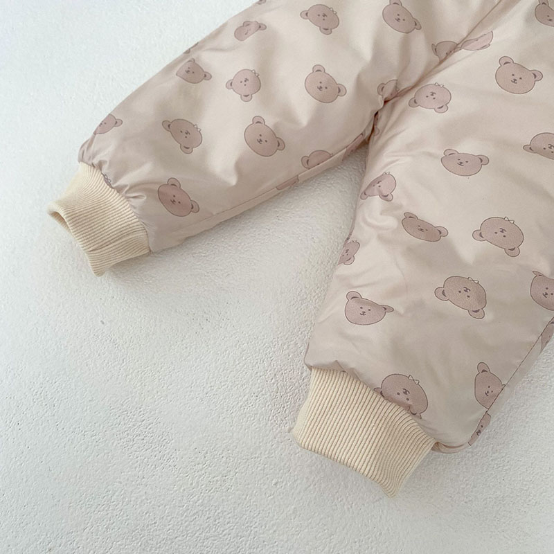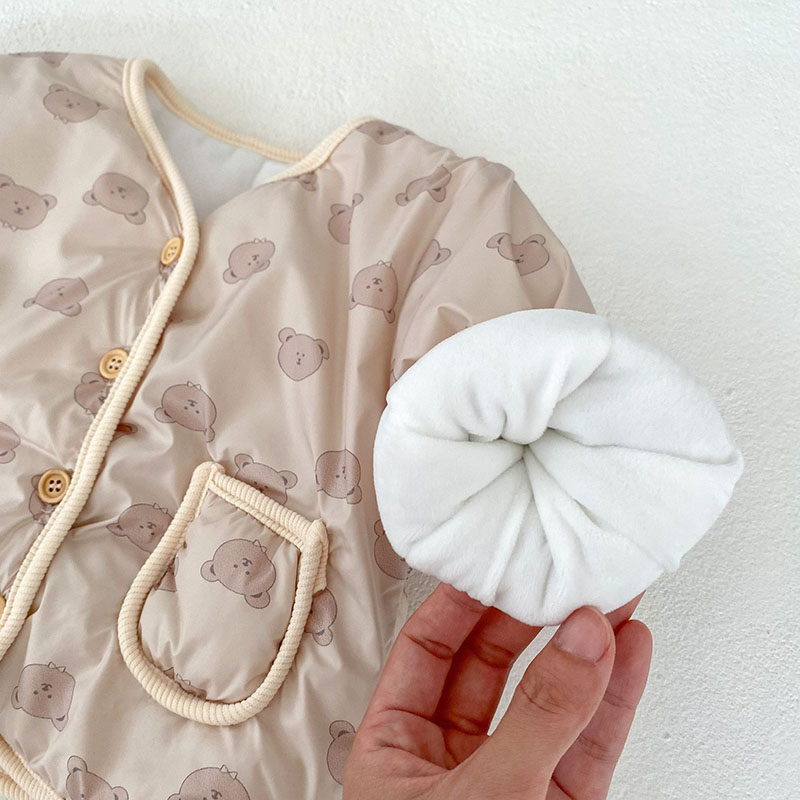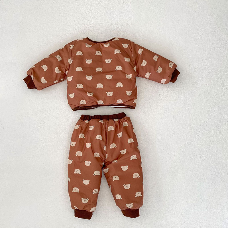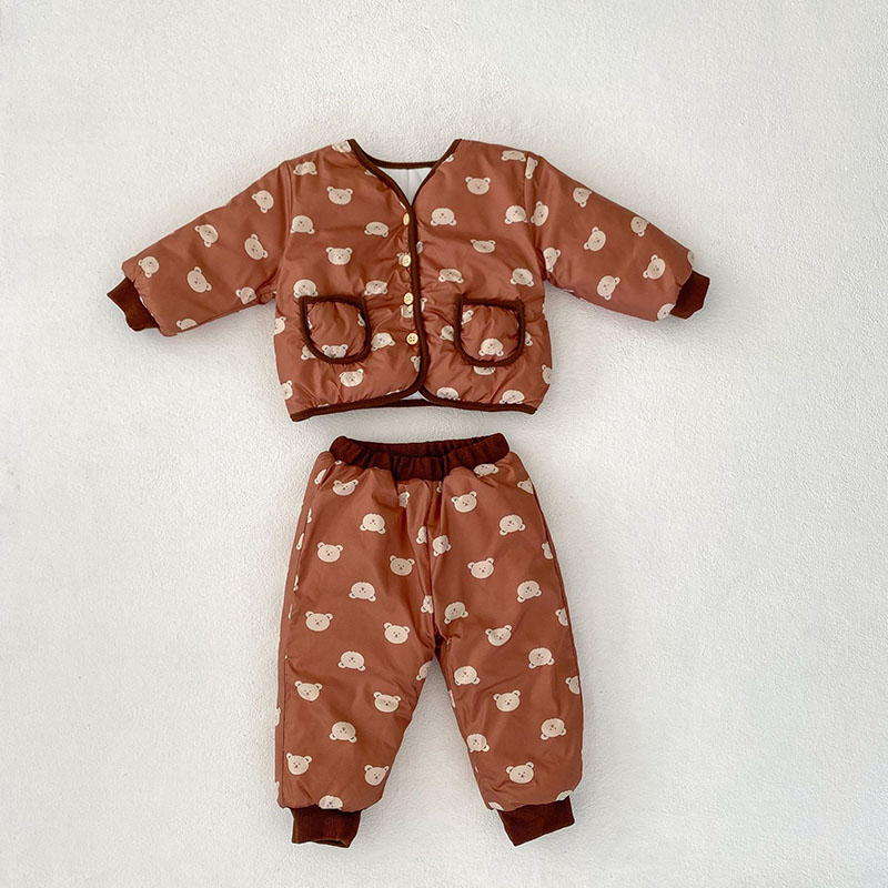 秋冬新作 ユニセックス 0-3歳子供 裏ボア裏起毛 防寒 厚手 熊 暖かく ジャケット 上着+長ズボン 66-100