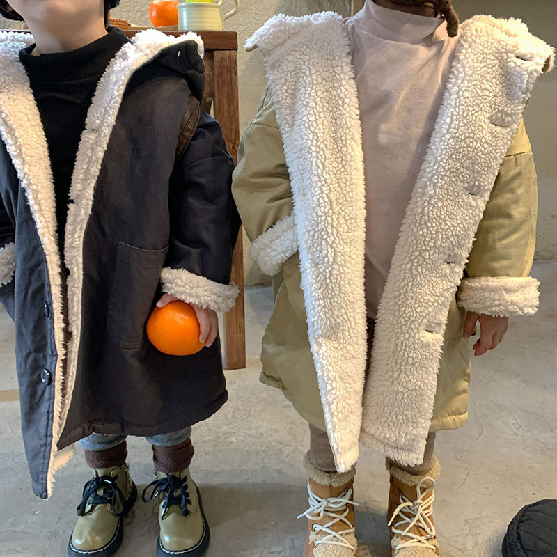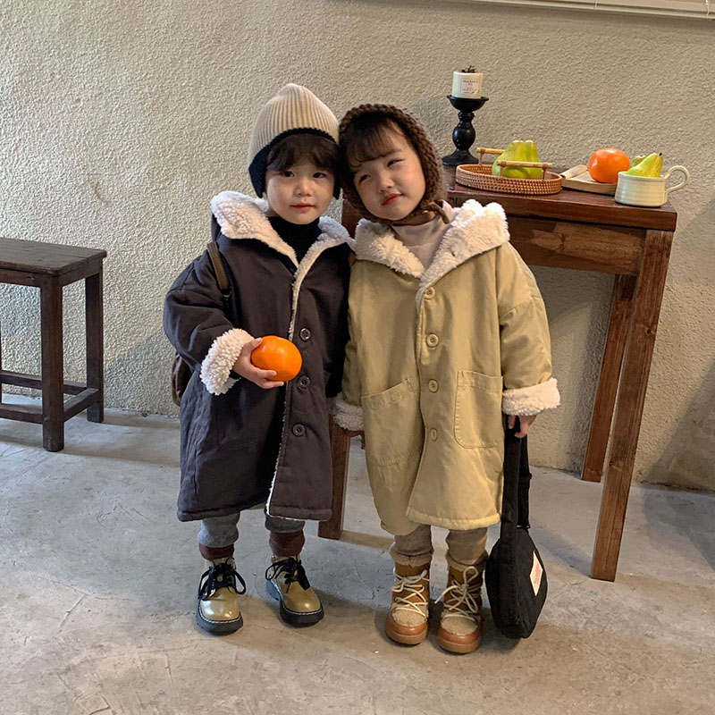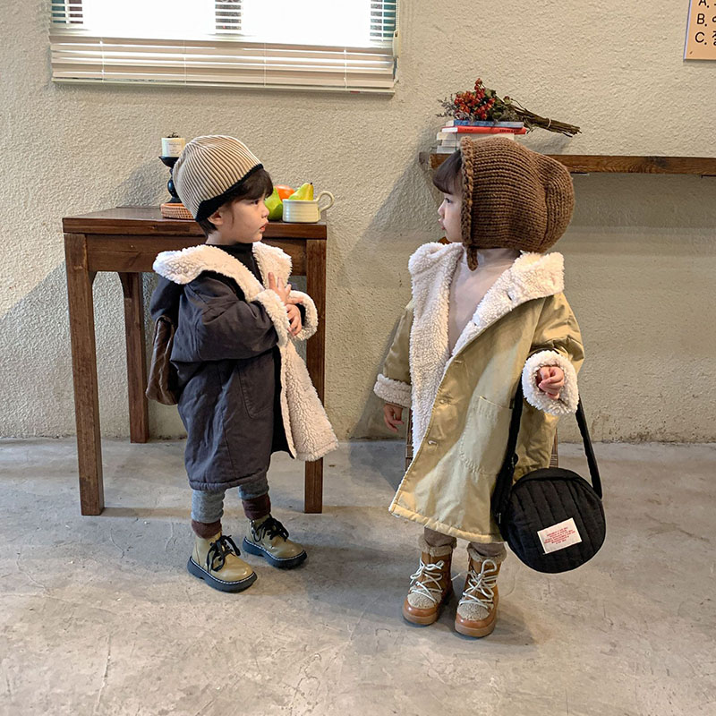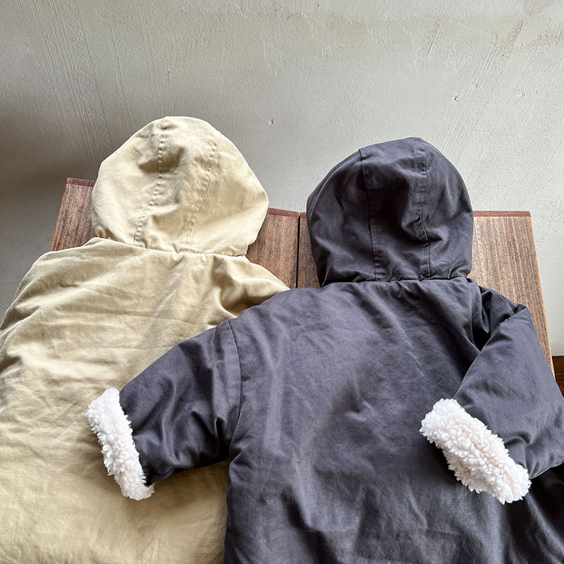 現在カテゴリ:全て商品 > 秋冬 ナチュラル系 ユニセックス モコモコボア ロングコート 厚手 フード付上着 裏ボア裏起毛 80-150