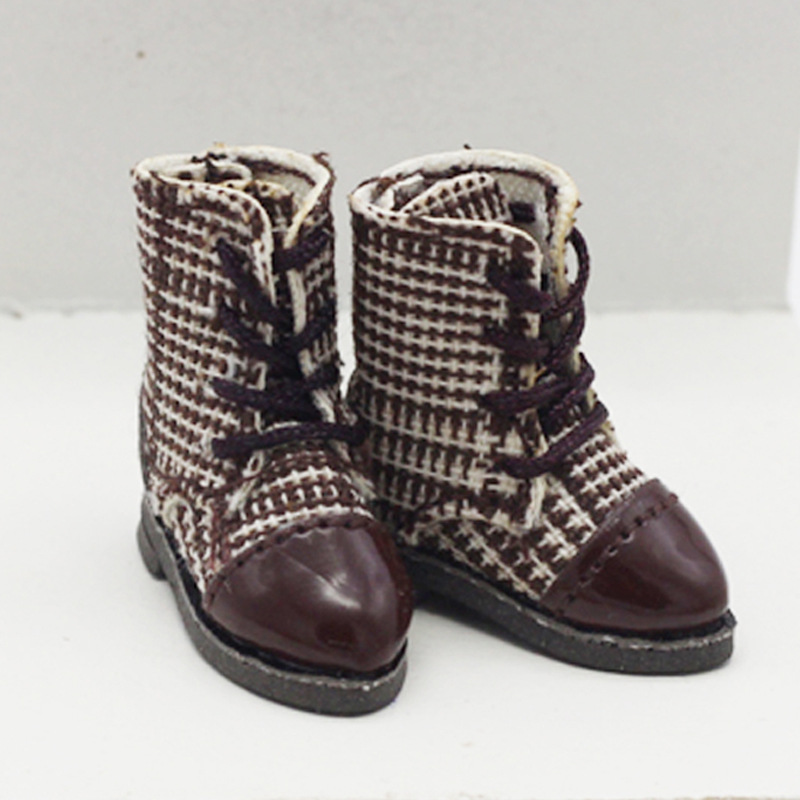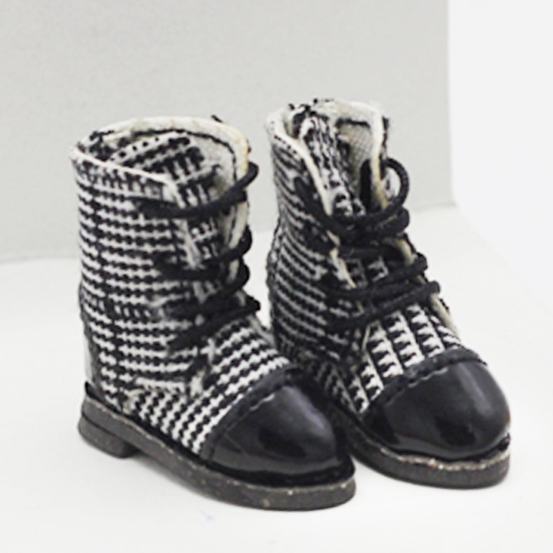 新品 ドール用衣装 人形doll 着せ替え ob11/BJD/molly/DOD 革靴 チェック柄 ブーツ シューズ 5色