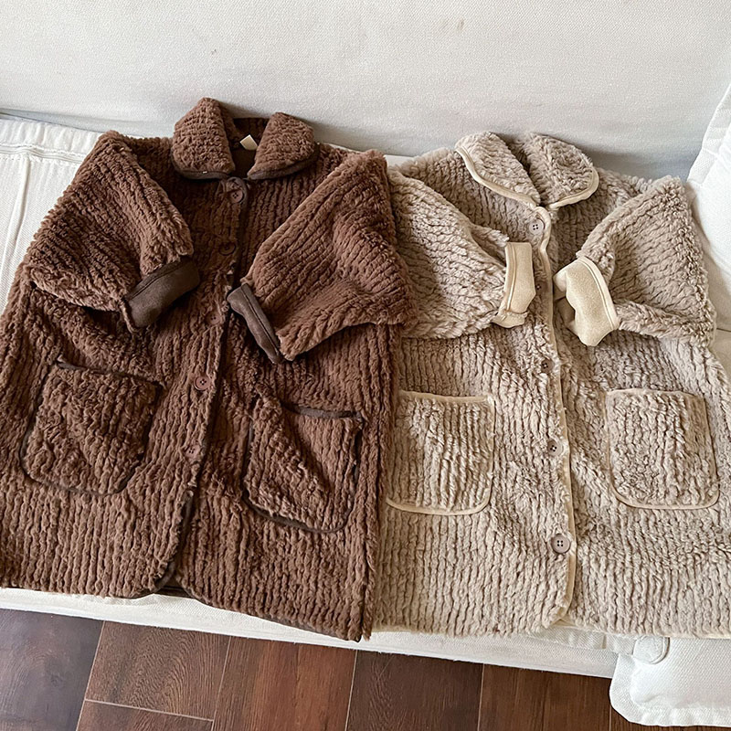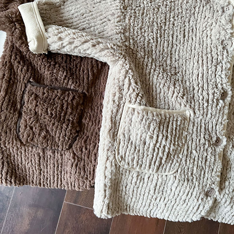 現在カテゴリ:全て商品 > 秋冬 ナチュラル系 ユニセックス モコモコボア ロングジャケット 厚手 コート上着 エコファー 80-150