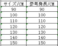 ◆サイズ:身長でご選択ください