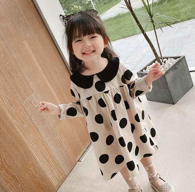 子供服★ワンピース★水玉★長袖★キッズ女の子★7-15#