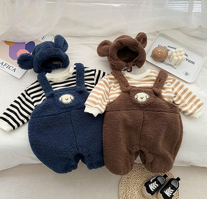 2023秋冬★ベビー服 厚手連体服+帽子★66-100cm★2色