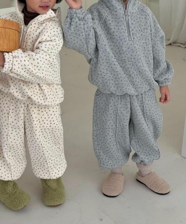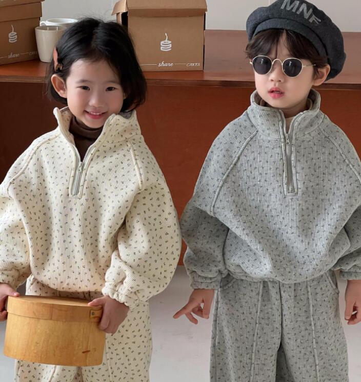2023秋冬J★子供服 厚手トップス+ズボン セット★80-140cm★2色