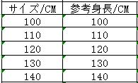 ◆サイズ:身長でご選択ください