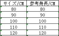 ◆サイズ:身長でご選択ください