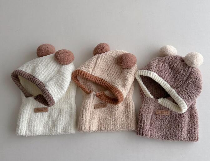 2023秋冬新品★子供用★帽子 ハット&マフラー一体★4色選べ