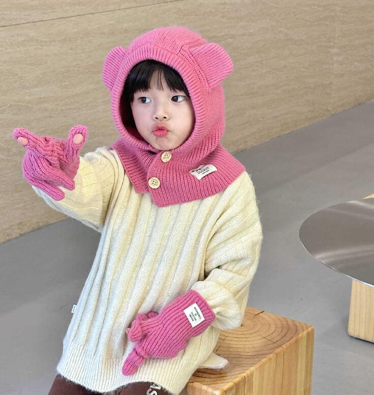 2023秋冬新品★子供用★帽子 ニットハット&マフラー一体★10色選べ