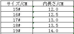 内の長さ:サイズ表をご参考ください。