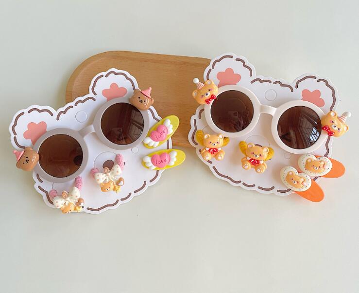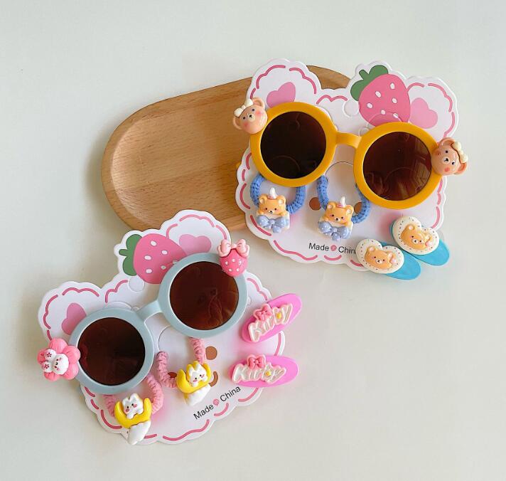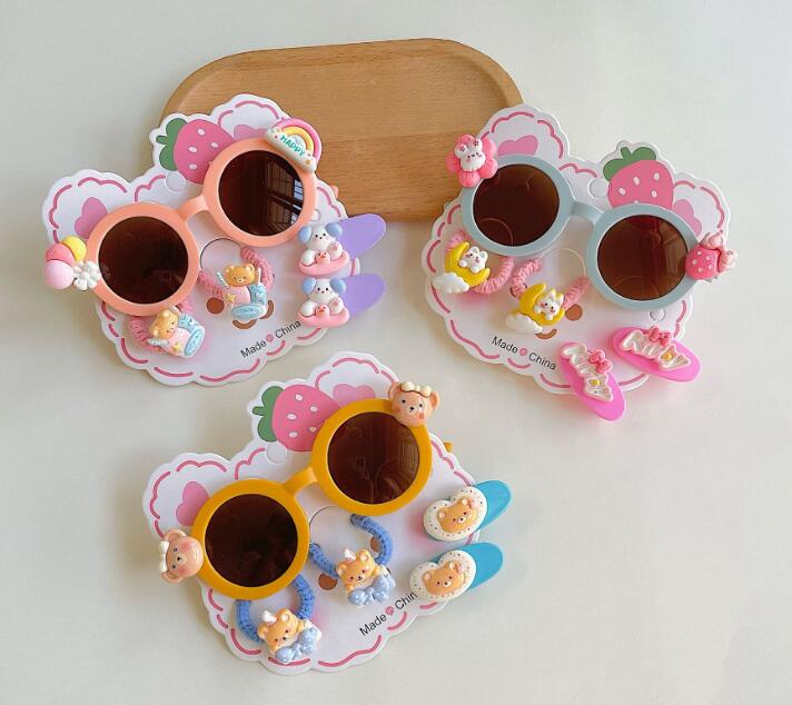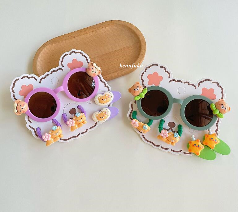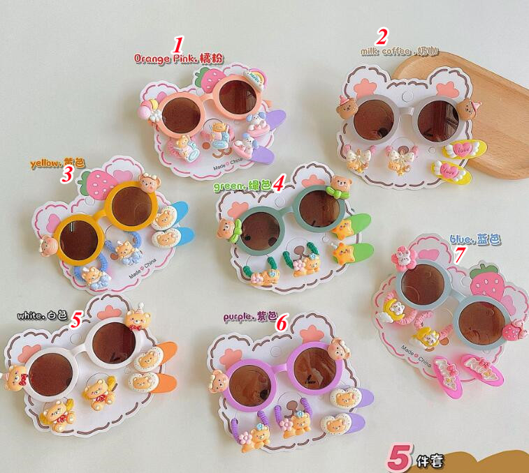 新登場★可愛い造型★キッズ眼鏡+ヘアゴム+ヘアビン 5点セット★5色