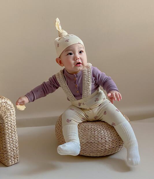 2024★春秋新作★韓国風子供服★Tシャツ★サロペット+帽子★6色66-90CM