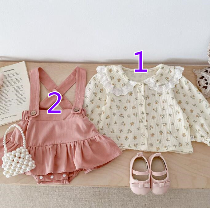 子供服★トップス★長袖シャツ★サロペット★花柄★韓国風子供服★ベビー★2色★66-90CM