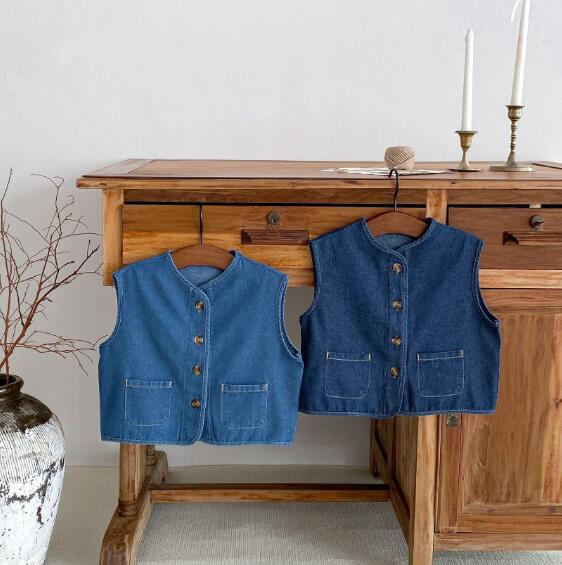 「2024」子供服★トップス★チョッキ★ベスト★デニム★キッズ★男女兼用★2色★80-130CM