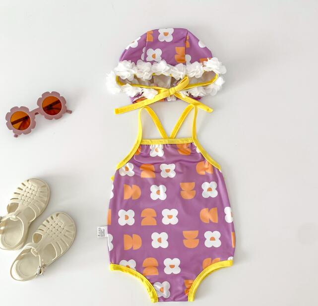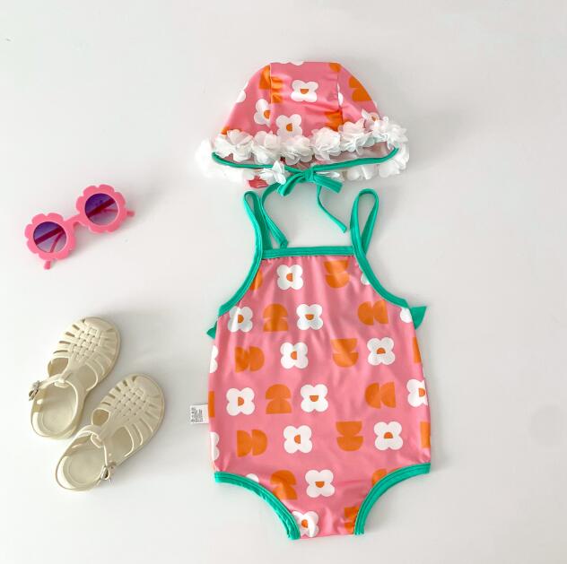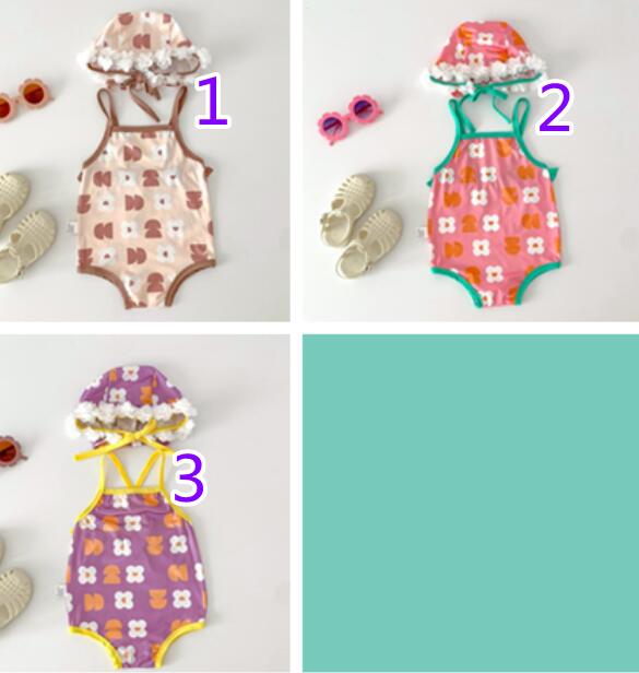 子供服★水着+帽子★連体服★韓国風子供服★ベビー★3色★66-100CM