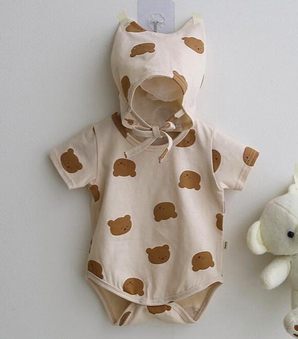 2024★春夏新作★韓国風ベビー服★ロンパース+帽子★4色66-90CM