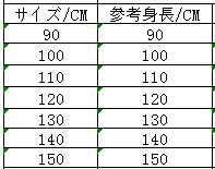 ◆サイズ:身長でご選択ください