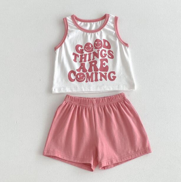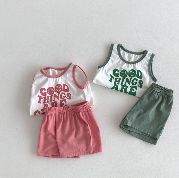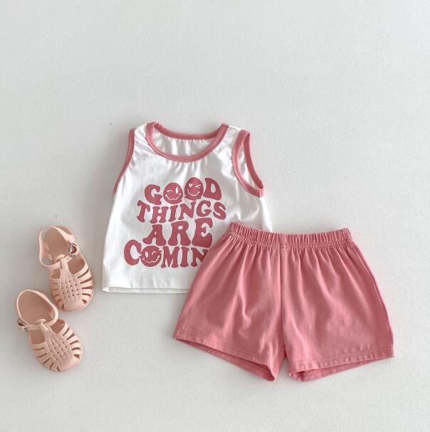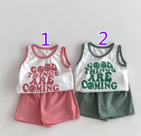 「2024」子供服★トップス+パンツ★セットアップ★袖なし★男女兼用★2色★80-130CM