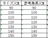 ◆サイズ:身長でご選択ください
