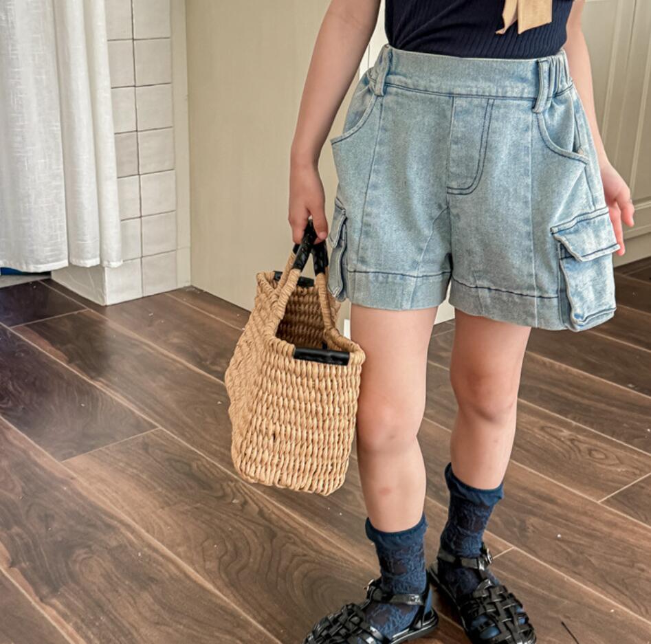「2024」子供服★ボトムス★ショートパンツ★デニム★韓国風子供服★2色★80-130CM