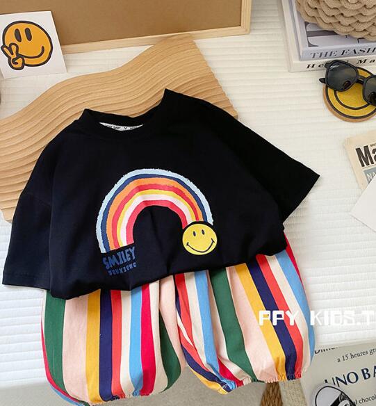 子供服★トップス+ズボン★セットアップ★キッズ★笑顔★2色★80-130CM