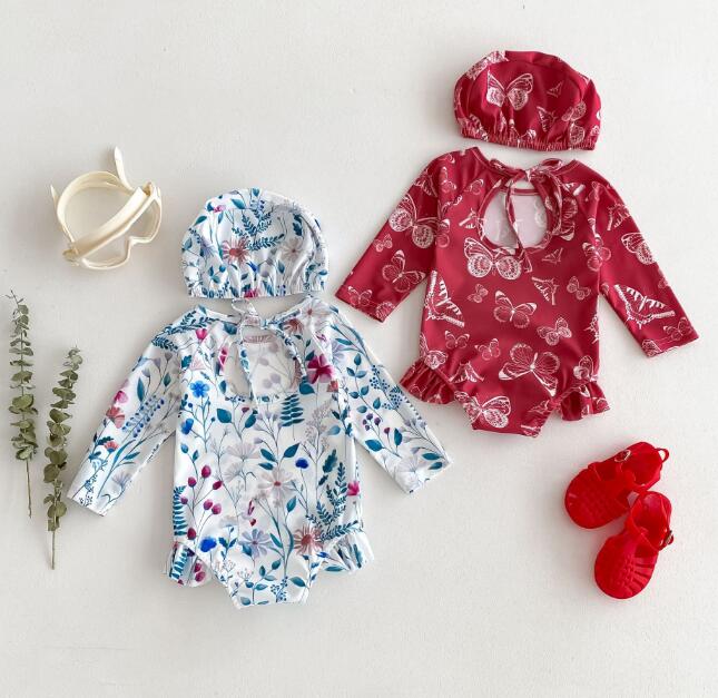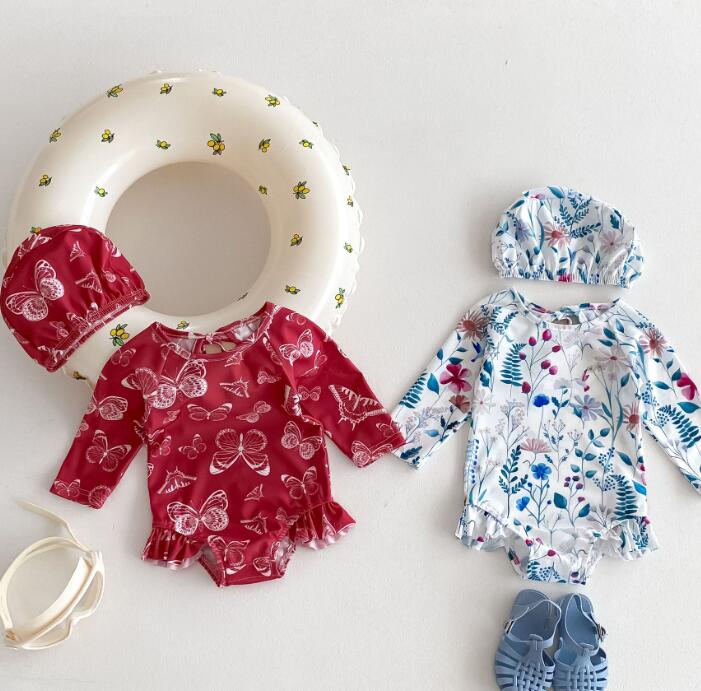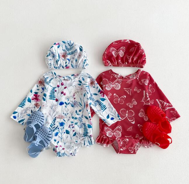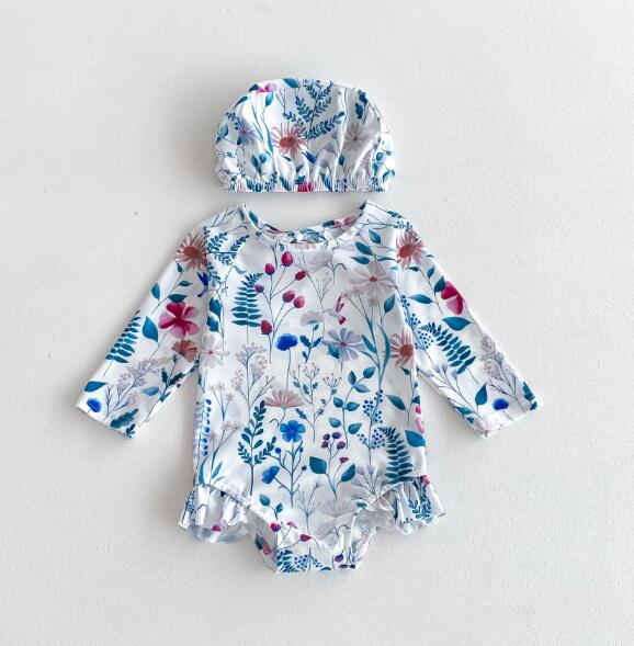 「2024」子供服★水着+帽子★連体服★長袖★韓国風子供服★ベビー★2色★66-100CM