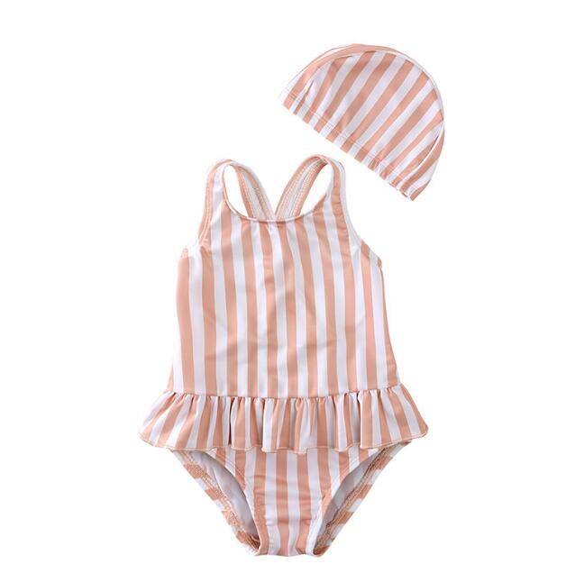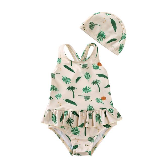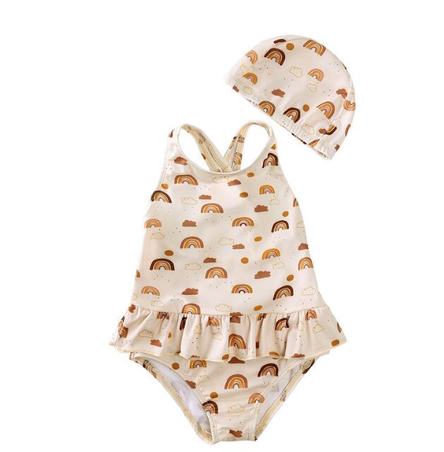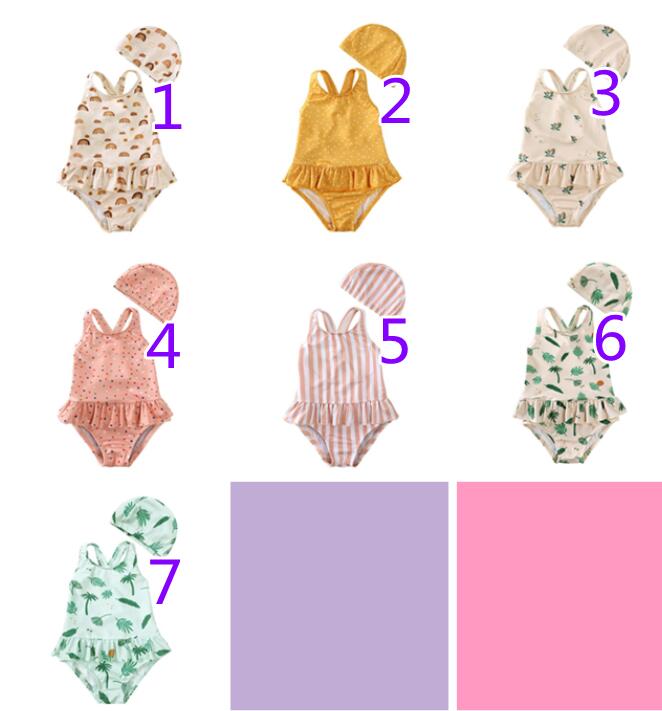 子供服★水着+帽子★連体服★キッズ女の子★袖なし★砂浜★温泉★7色★80-140CM