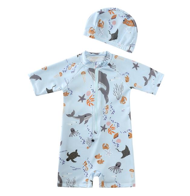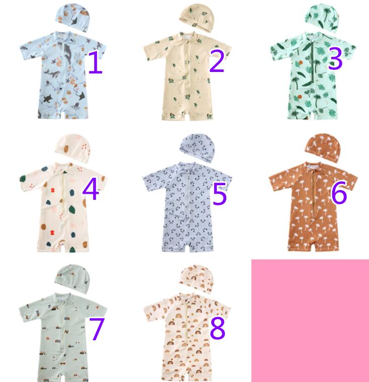「2024」子供服★水着+帽子★連体服★砂浜★キッズ★8色★80-130CM