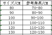 ◆サイズ:身長でご選択ください
