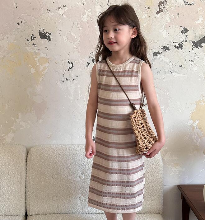 「2024」子供服★ワンピース★韓国風子供服★ストライプ★キッズ女の子★2色★90-150CM