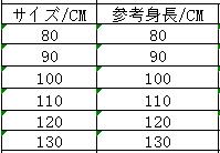 ◆サイズ:身長でご選択ください