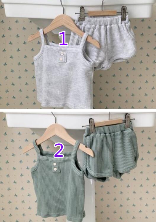 「2024」子供服★トップス+ズボン★セットアップ★韓国風子供服★袖なし★2色★80-130CM