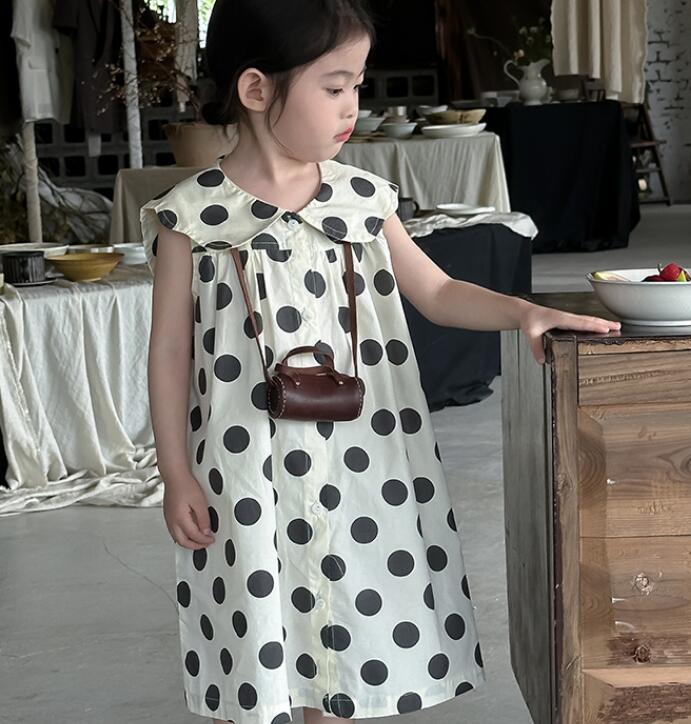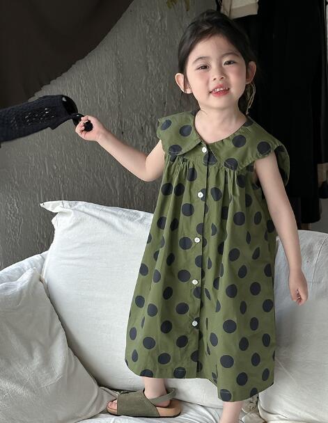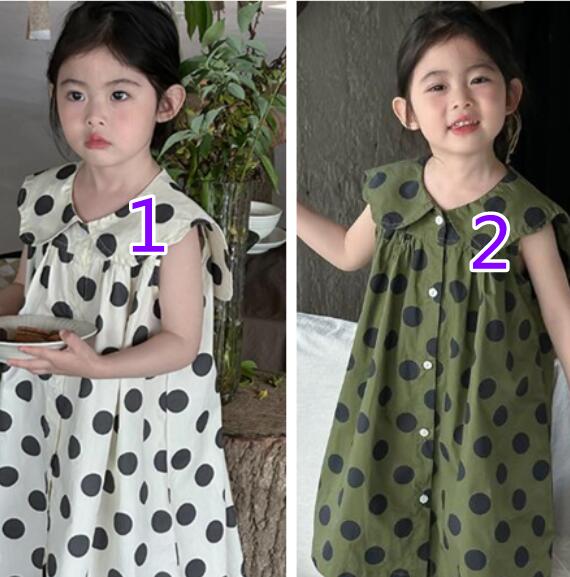 「2024」子供服★ワンピース★ノースリーブ★水玉★韓国風子供服★2色★90-150CM