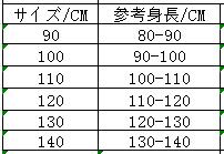 ◆サイズ:身長でご選択ください