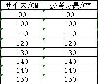◆サイズ:身長でご選択ください