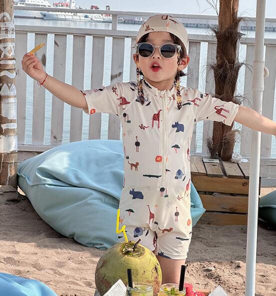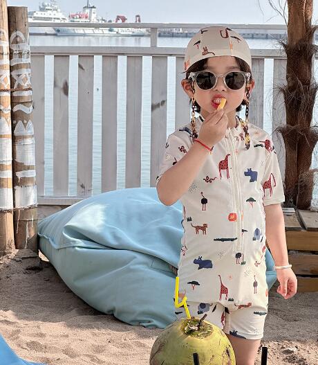 「2024」子供服★連体服★水着+帽子★砂浜★韓国風子供服★速乾★90-140CM