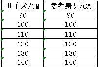 ◆サイズ:身長でご選択ください