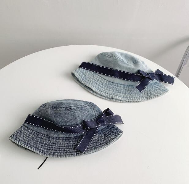 「2024」子供用★帽子★バケットハット★デニム★蝶結び★キッズ★2色