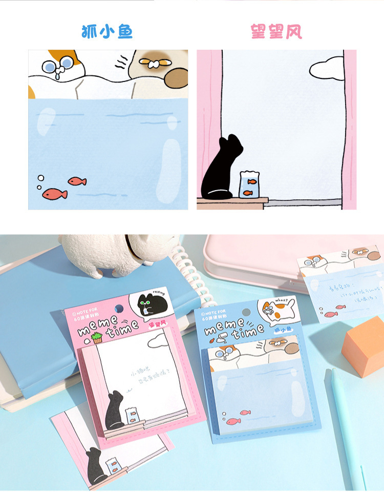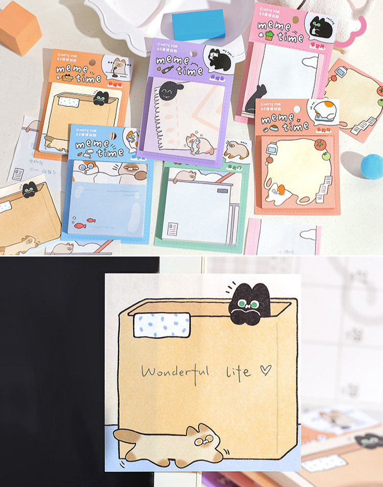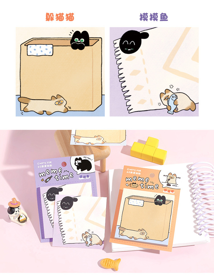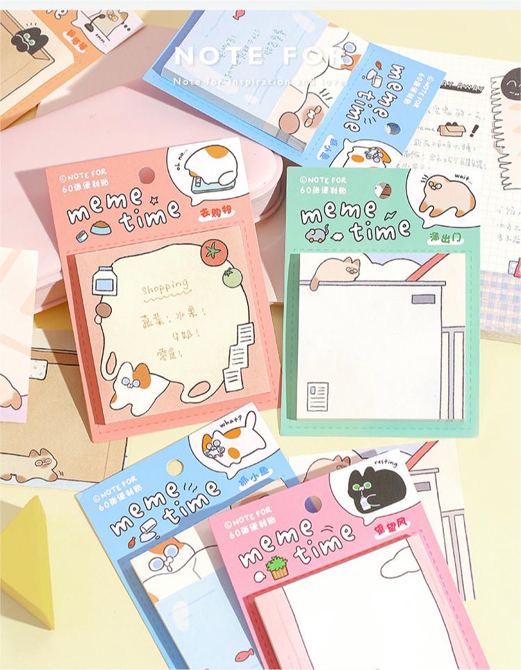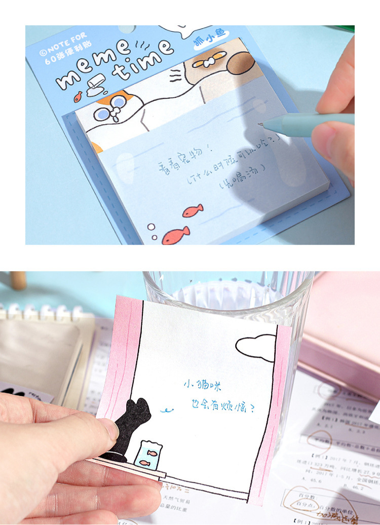 カフェ風 貼り付けメモ紙 ポストイット 伝言メモ ノートペーパー メモポスト 猫キャット 60枚入