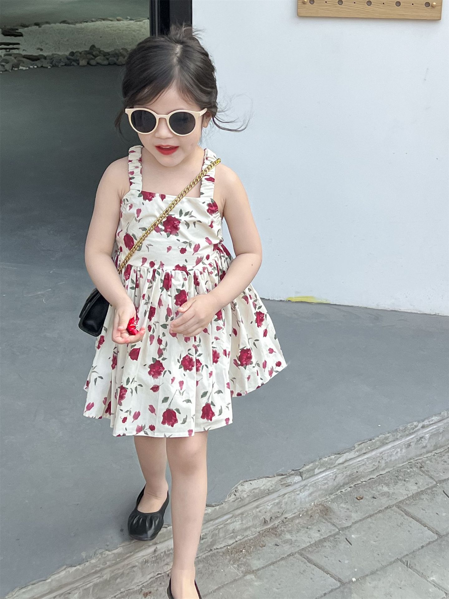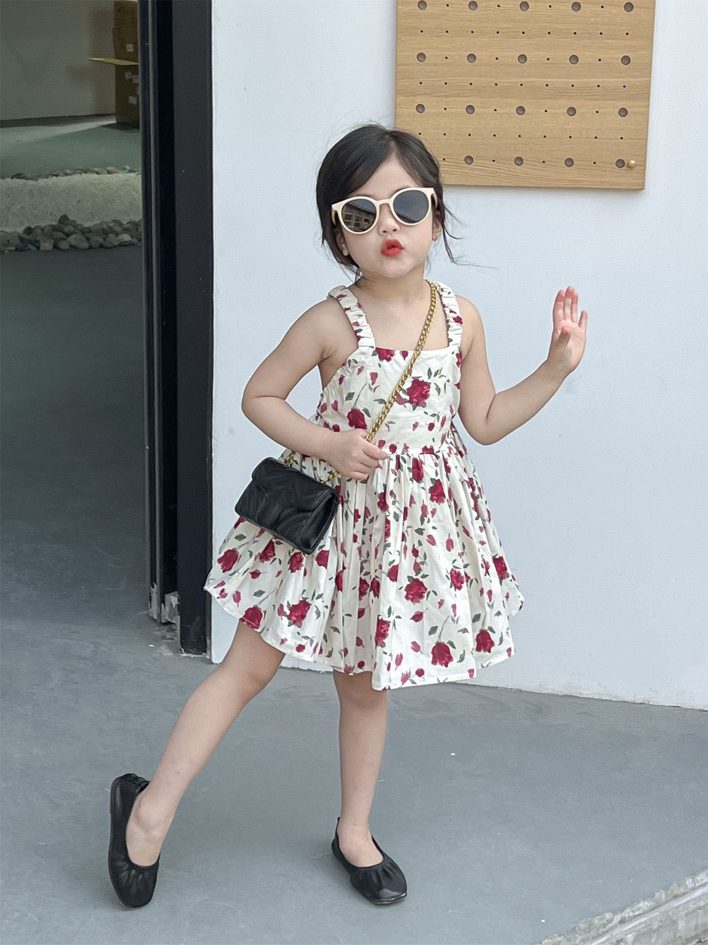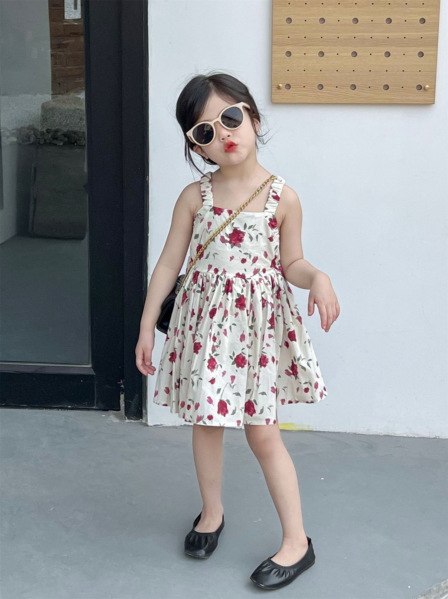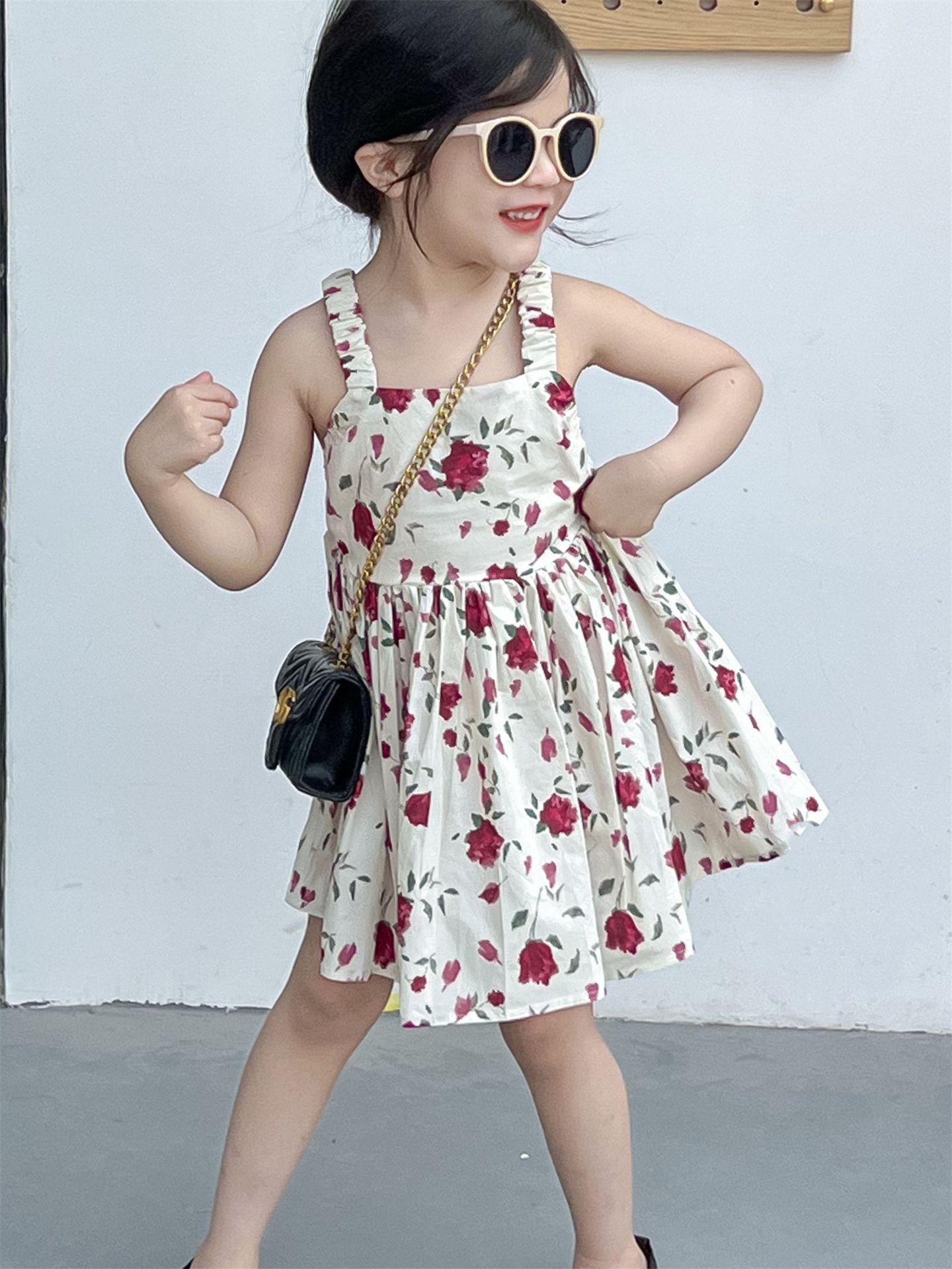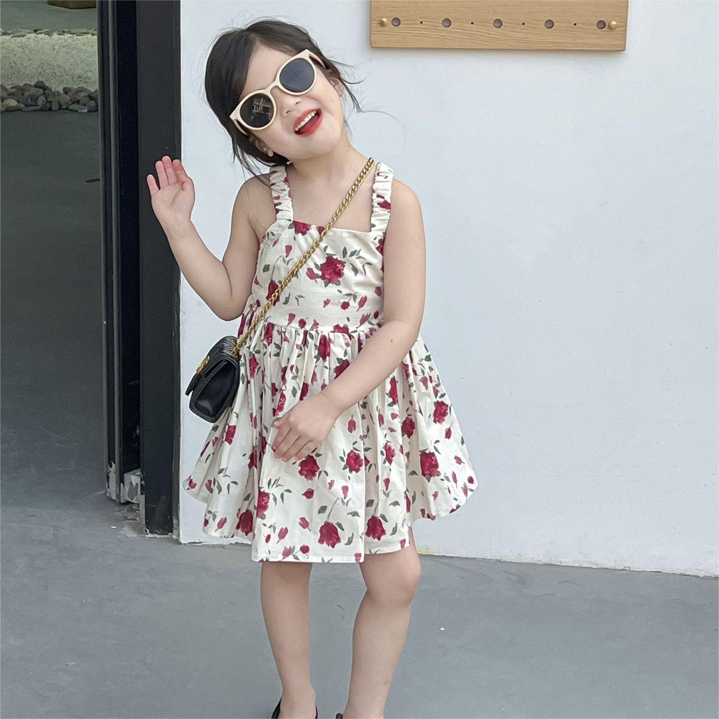 春夏 韓国風子供服 ガール シフトドレス ノースリープ 花柄 吊りスカート ワンピース ワンピ 7-17