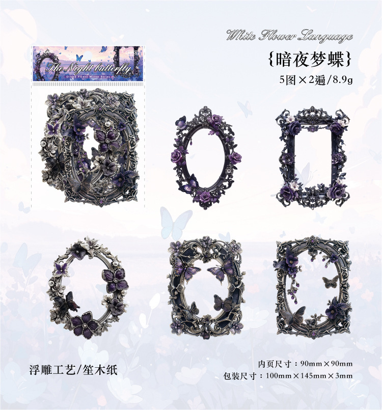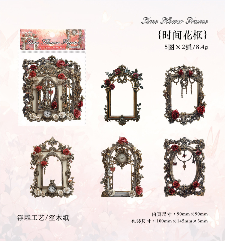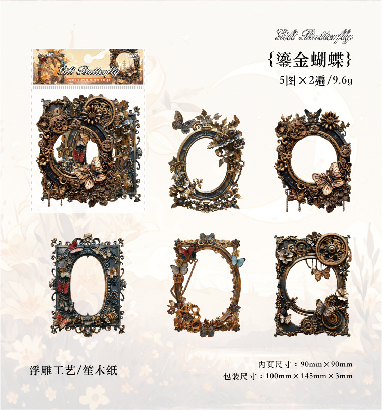 ペーパー素材紙 カード枠 アンティーク バロック枠 薔薇ローズ バタフライ蝶 フレーム イラスト 10枚入
