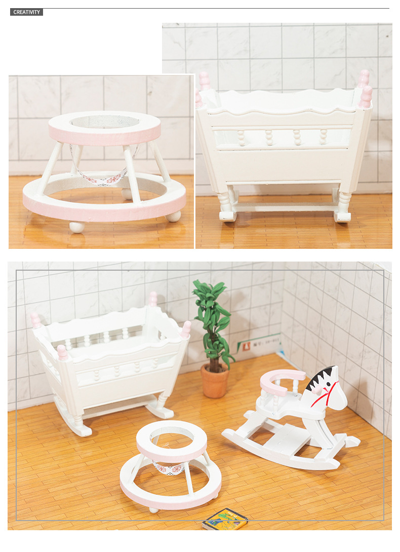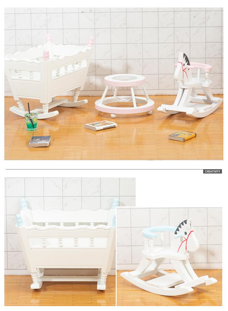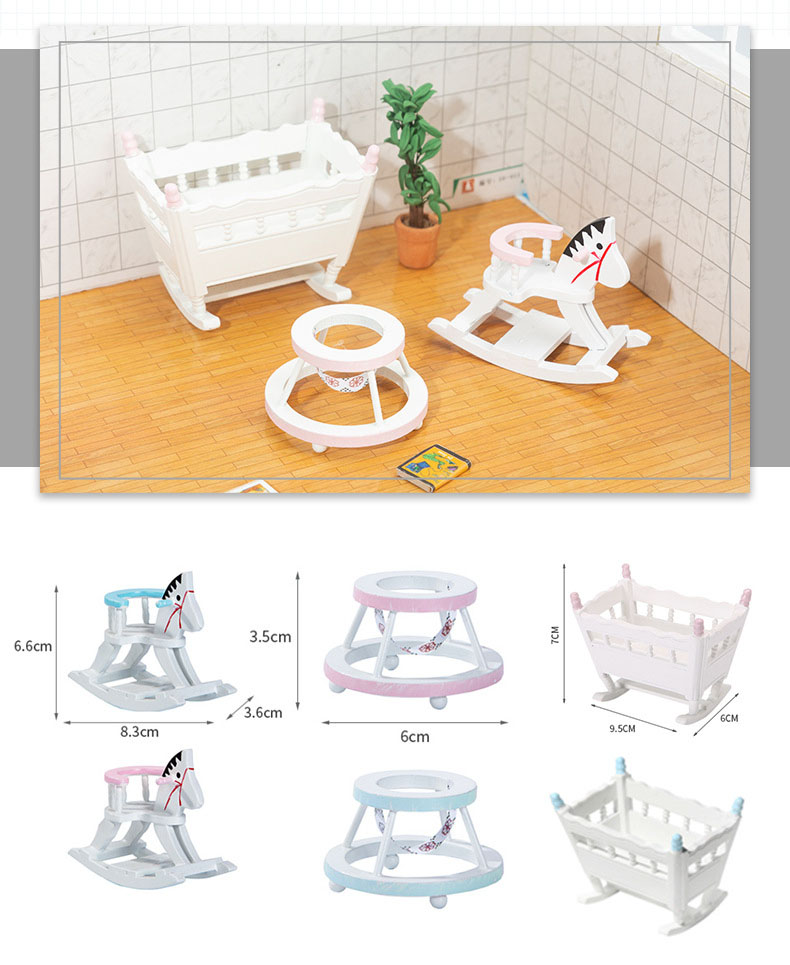 ミニチュア ドールハウス用家具フィギュア ぬい撮 1:12dollhouse3点組 ベビーウォーカー木馬ベビーベッド
