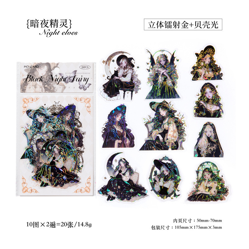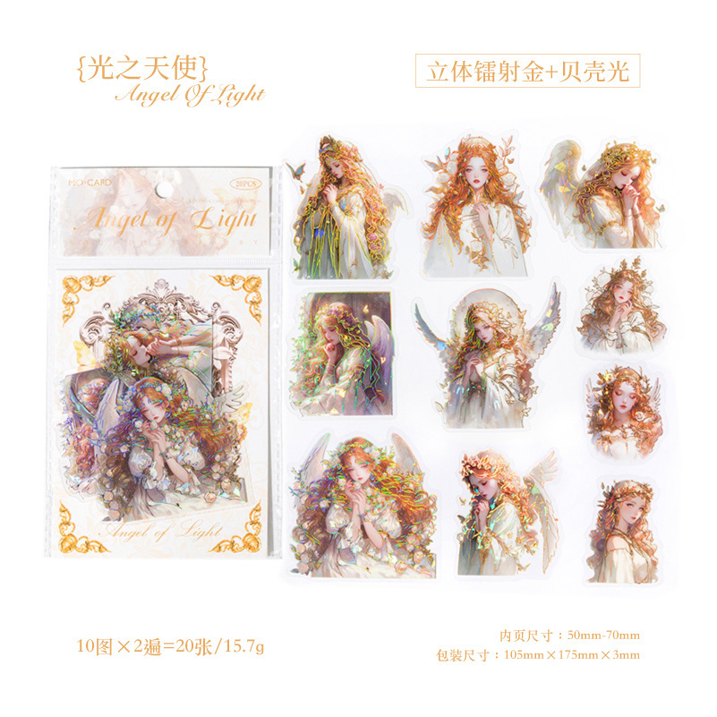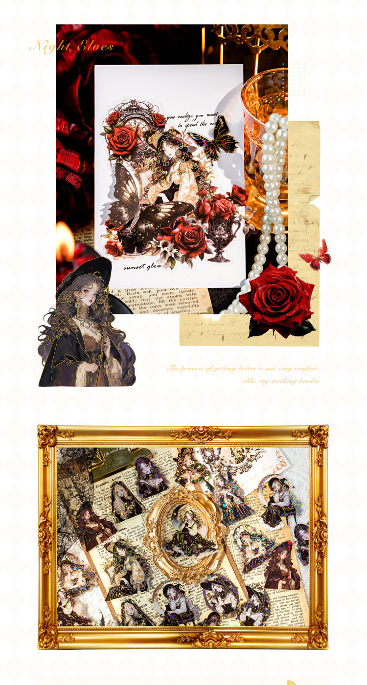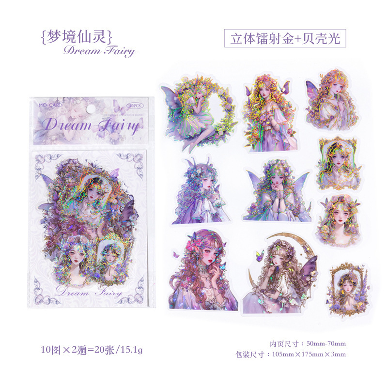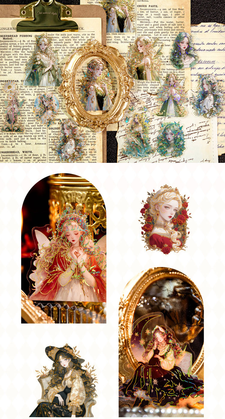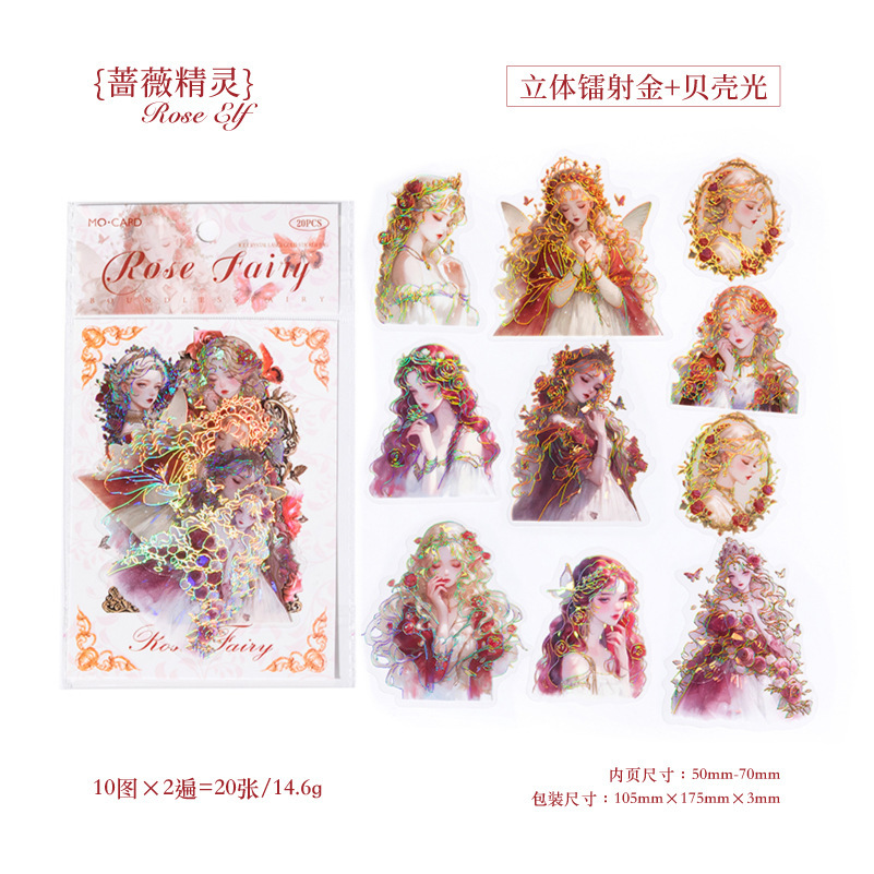 PETシール ステッカー アンティーク ガール少女 花フラワー バタフライ蝶 精霊天使 人魚姫 20枚入
